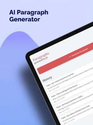 Discover the power of effortless writing with the AI Paragraph Writer app. Whether you're crafting a compelling story, writing an engaging blog post, or drafting a professional document, our AI-driven tool is here to transform your ideas into perfectly structured paragraphs. Experience the future of writing with unparalleled ease and precision.
