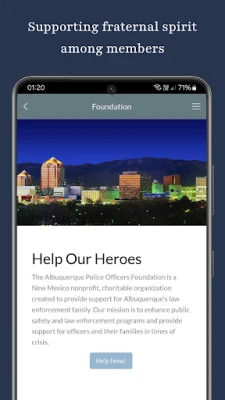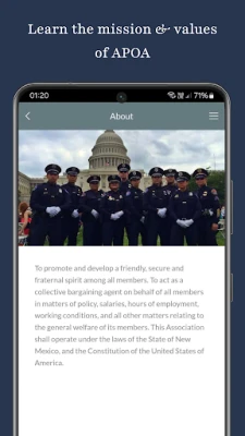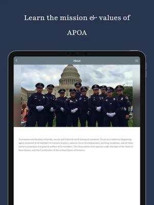 The Albuquerque Police Officers' Association (APOA) app enables members to stay up to date on union news and events, as well as access important documents, forms and other resources. It also provides the ability to easily contact a rep in an emergency situation. The mission statement of the APOA is to promote and develop a friendly, secure and fraternal spirit among all members. To act as a collective bargaining agent on behalf of all members in matters of policy, salaries, hours of employment, working conditions, and all other matters relating to the general welfare of its members. This Association shall operate under the laws of the State of New Mexico, and the Constitution of the United States of America.