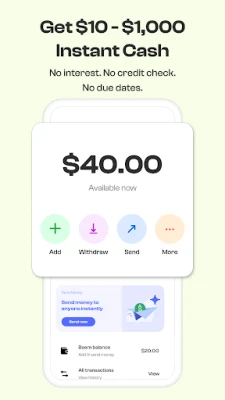 Beem (formerly Line) is better than any instant cash advance app, payday loan, personal loan and credit products. Subscribe to withdraw verified bank deposits early, get job loss protection, file taxes and more. Plans start as low as $2.47/month. Beem is not a payday loan or a cash advance app.
