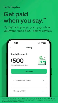 ^Eligibility requirements apply, including receipt of qualifying direct deposits as set forth in the MyPay Agreement. Not all users will qualify. Credit limits range from $20-$500.