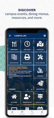 - Campus Life: Dining menus, what’s open, campus map, club information, athletics