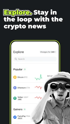 The Explore feature in Changelly app lets users track crypto market movements and stay informed on cryptocurrency news and updates. It displays exchange rates and prices for various cryptocurrencies, including Bitcoin, and provides access to news and analysis from top sources such as BTC, Bitcoin, and BNB news. The function also allows users to track Bitcoin and other crypto markets, view BTC dominance, and follow the latest trends. Whether you're a seasoned trader or a new crypto enthusiast, Explore is an essential tool for staying informed on the latest crypto market developments.
