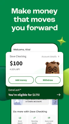 Add money to your Dave Checking account or Goals account to grow your cash with this high annual percentage yield. Managing your money with Dave & online banking makes saving simple.
