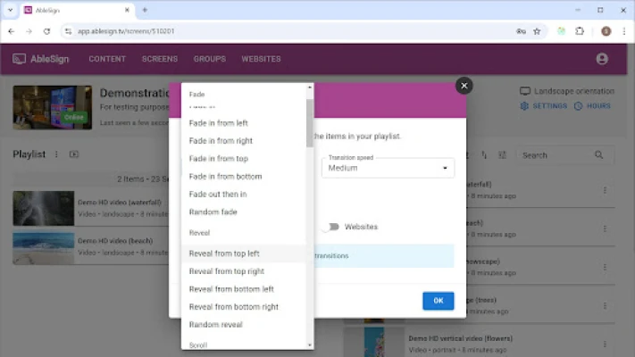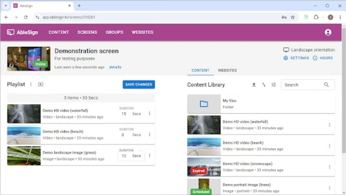 Digital signage app that turns any screen into a digital sign. AbleSign is a simple, reliable digital signage app that is very easy to use.