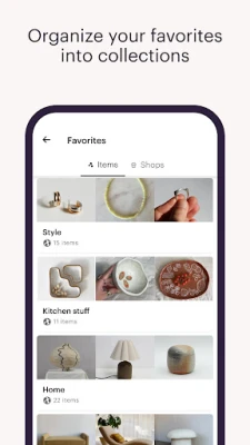 • Favorite shops, save items, and organize your pieces in collections for future inspiration.