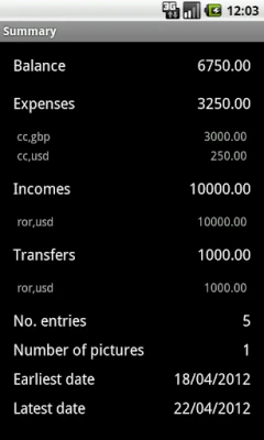 * Desktop widget to jump directly to expense adding form (do not move app to SD - Android does not support widgets for apps installed on external storage)