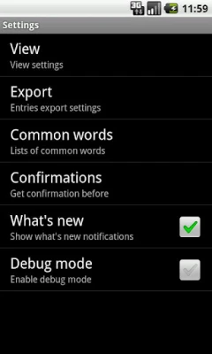 * Exporting entries by email (you can specify your default address in settings)