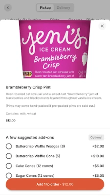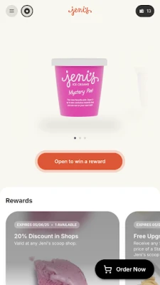 Turn today’s scoops into free scoops (and other cool stuff) in the future. Order right from the Jeni's app to skip the line or have ice cream delivered to your door, plus earn points towards free ice cream.