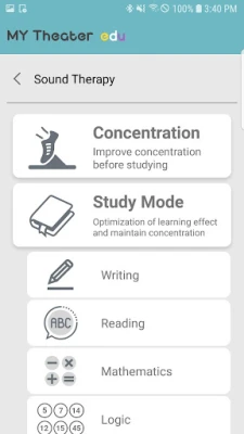 - Show music contents of Micro SD of My Theater Edu Bluetooth Headset. - Micro SD music control. - Study concentration and relaxation mode. - Mommy Call - Change theme. - Help