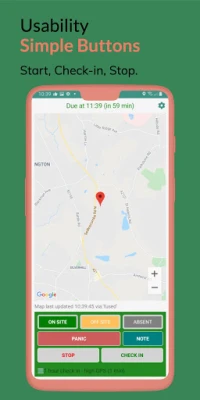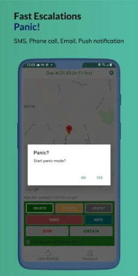 - Panic alarm, for those scenarios where the lone worker wishes to immediately escalate to their supervisor (or predefined contacts).