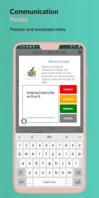 - Notes - Sometimes it’s really useful to have additional information on where you are or what’s happening. These notes can be simply logged for information or immediately info their Supervisor.