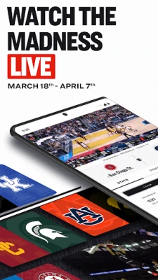 Keep up with every NCAA Division I Men's Basketball Tournament game. College basketball games are just a tap away – watch NCAA Men's basketball games live on your Android device starting March 18th. Enjoy games on TBS, TNT, truTV, and CBS! (CBS games are not available to watch in the March Madness Live app for Google TV)