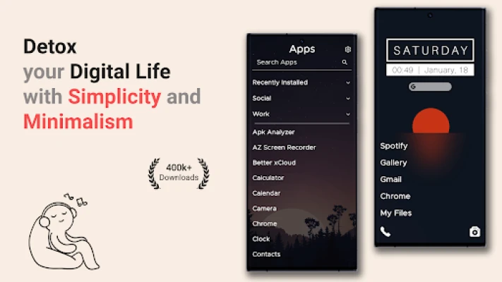 🧘 Minimalist UI: A clean home screen & app drawer that shows only what matters. Organize with folders & hide apps to reduce temptation and stay focused.