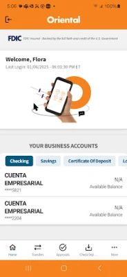 Available to all Oriental Bank business customers already enrolled on the Online Banking service. With this application you can use your Android® to easily and securely: