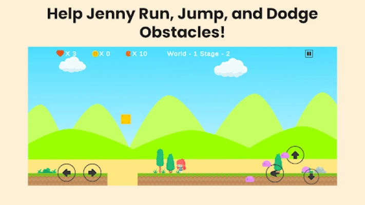 It was a peaceful day in the Mushroom Kingdom 🌲 when an evil monster invaded, bringing chaos to the land! 🌋 her friends were captured, and darkness spread across the islands. Princess Jenny, the kingdom's brave adventurer, sets out to defeat the monsters, collect power-ups, and restore peace. Can you help her succeed? 💪