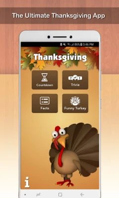 Get into the holiday spirit with the ultimate Thanksgiving app — packed with fun facts, trivia, a live countdown, and more! Whether you're with family or just love turkeys and traditions, this app brings Thanksgiving to life.