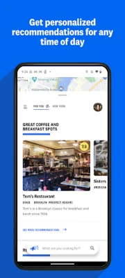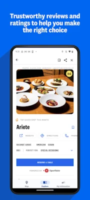 Find Places: Search for nearby restaurants based on your current location, or browse for a spot in a city you are planning to visit. Filter on specific cuisines types, or “Perfect Fors” to find the right restaurant for every situation.