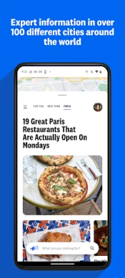 Explore: Browse our restaurant reviews and curated guides in more than 40 cities worldwide. Use different categories to find the restaurant that best suits your needs. Categories include: Perfect Fors (Ex: Girls' Night Out, Late Night Eats), Cuisine, and Neighborhood.