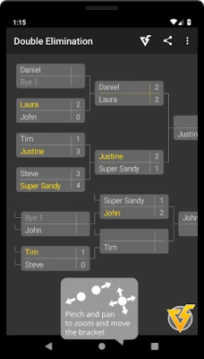* Simple and intuitive, easy-to-use interface: Move (drag with one finger) or zoom (pinch with two fingers) the bracket. Double-tap or long-press the match screen for further options.